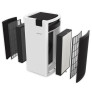 Čistič je dále vybaven laserovým snímačem prachových částic, který v reálném čase ukazuje na displeji aktuální míru znečištění částicemi o velikosti PM 2,5, takže kvalitu vzduchu vlastně vidíte na displeji přístroje. Můžete využít také funkci časovače, režimu AUTO MODE pro automatické přizpůsobení výkonu vůči aktuální kvalitě vzduchu a pro manipulaci užitečnou rukojeť, která usnadní případné přesunutí přístroje po kolečkách do jiné místnosti.