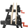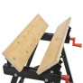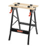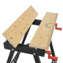 Svěrky je možné připevnit v několika polohách v připravených otvorech. Materiál je možné pomocí kliček pevně přitáhnout a upevnit ke stolu. Stůl je tak ideálním pomocníkem například při opracovávání prken, trámků apod.