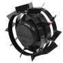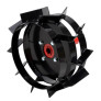 Ocelová lopatková kola pro kultivátor HECHT 7100. Kola jsou určena pro práci v zemině, na záhonech a políčkách pro použití s dalším příslušenstvím. Průměr a šířka kol jsou optimalizovány pro maximální využití výkonu stroje v nezpevněném terénu. Jsou dodávána jako pár. Průměr kola je 31 cm, průměr kola i s lopatkami je 39 cm. Šířka kola je 17 cm. Kola jsou dodávána s pevnou hřídelí, ke které jsou připevněna čtyřmi šrouby. To dává možnost dodatečně je osadit dvojicí závaží HECHT 007101 (2 x 12 kg) a tím ještě zvýšit jejich trakci. Závaží je nutné samostatně dokoupit, nejsou součástí dodávky kol.