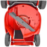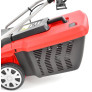 Díky matkám s hvězdicovými úchyty je možné sekačku snadno složit a pomocí madel ji přenést na požadované místo. Dodávaný koš je celoplastový o objemu 45 l.