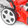 Kvalitní rukojeť lze díky použití hvězdicových matic kdykoli během pár vteřin snadno oddělit nebo složit. Zároveň je rukojeť opatřena propracovaným systémem nastavení výšky, který lze použít i pro její rychlé složení při parkování. Velkou výhodou je i páka spínače motoru a páka pojezdu, které jsou vedeny po celé šířce madla. Díky tomu je možné vést sekačku libovolnou rukou a druhou ruku využít například k bezpečné manipulaci s přívodním kabelem. Samozřejmostí je i bezpečnostní tlačítko proti náhodnému spuštění a odlehčovač pnutí kabelu.