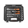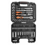 94 dílná sada nářadí. Standardní vybavení: Hlavice na zapalovací svíčky, ohebný nástavec, prodloužené hlavice, sada bitů, adaptér, spojka, malá a velká ráčna, kardanový kloub, šroubováková rukojeť, velké a malé t-vratidlo, imbusové klíče, plastový kufr