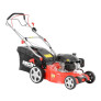 Přes masívní zpracování sekačka váží pouhých 32 kg. Pro zachytávání posekané trávy slouží 55 l koš z plastu a odolné textilie, který je pro lepší kontrolu stavu naplnění opatřen kontrolní klapkou. Tato klapka díky změnám v proudění vzduchu v závislosti na naplnění koše mění svou polohu a tak má obsluha vždy přehled o obsahu koše. Pevně uchycená rukojeť je díky použití křídlových matic snadno složitelná a najdete na ní snadno dostupné všechny hlavní ovládací prvky sekačky. Příjemné je polstrované madlo zmírňující přenášení vibrací. Modely od r.v. 2016 jsou dodávány bez panelu na madle a přední části.