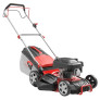 Pod šasi rotuje nůž se záběrem 46 cm, který umožní jak běžné sečení, tak mulčování. Posečená tráva pak v základním režimu putuje do 55 l velkého koše.