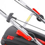 Pohodlné polstrované madlo lze díky rychloupínání snadno složit pro uskladnění, nebo přepravu sekačky a je zároveň výškově nastavitelné. Výkonný motor s obsahem 173 cm3 a kroutícím momentem 8,5Nm/2600ot.min-1je potřeba pro dostatečné zajištění kvalitního sečení, sběru a pojezdu. Při výběru sekaček se záběrem 50 - 53 cm si dejte pozor na sekačky se slabým motorem 139 - 140 cm3 a kroutícím momentem okolo 6 Nm/2600ot.min-1, kde při vyšší nebo husté trávě výkon a kroutící moment motoru může chybět, a sekačka pak zdaleka nedosahuje potřebného výkonu. Někteří výrobci tento handikep maskují tím, že neuvádí skutečný obsah motoru.