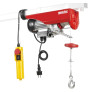 Elektrický lanový naviják je skvělý pomocník všude tam, kde je třeba zvedat těžká břemena. Jeho nosnost nosnost 125 kg, při použití kladky je nosnost 250 kg (kladka je součástí dodávky). Výška zdvihu bez kladky je 12 m, při použití kladky 6 m. Rychlost zdvihu bez kladky je 8 m/min, při použití kladky je 4 m/min.
