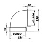 Plastové horizontální koleno 90° se využívá k napojení ventilačního potrubí 204x60 mm nebo komponentů.