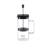 french press, objem 800 ml, nádoba se skleněnou rukojetí, vyrobeno z borosilikátového žáruvzdorného skla, plastový filtr, plastové víko