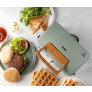 V jednom balení dostanete tři přístroje: sendvičovač, vaflovač a panini gril. Jednotlivé pečící desky se snadno vyměňují a díky kvalitnímu nepřilnavému povrchu i snadno čistí.